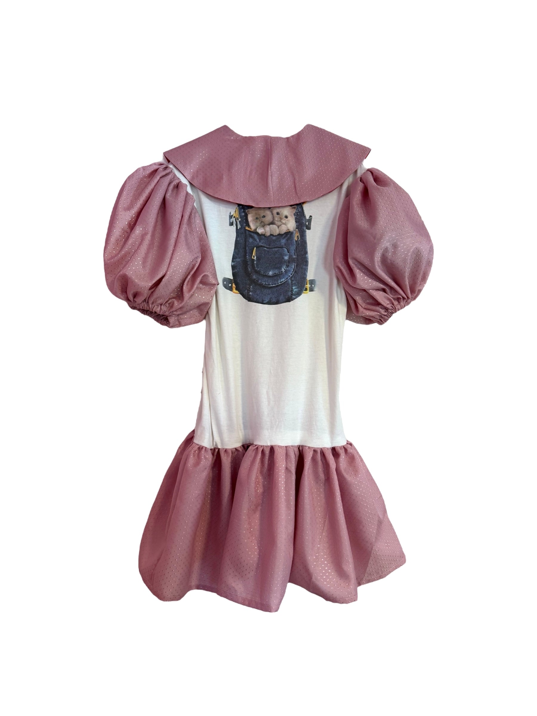 Vintage Sleep shirt L with added puff sleeves and ruffle at hem made from vintage curtain and fabric appliqué. Also comes with matching detachable Peter Pan collar.