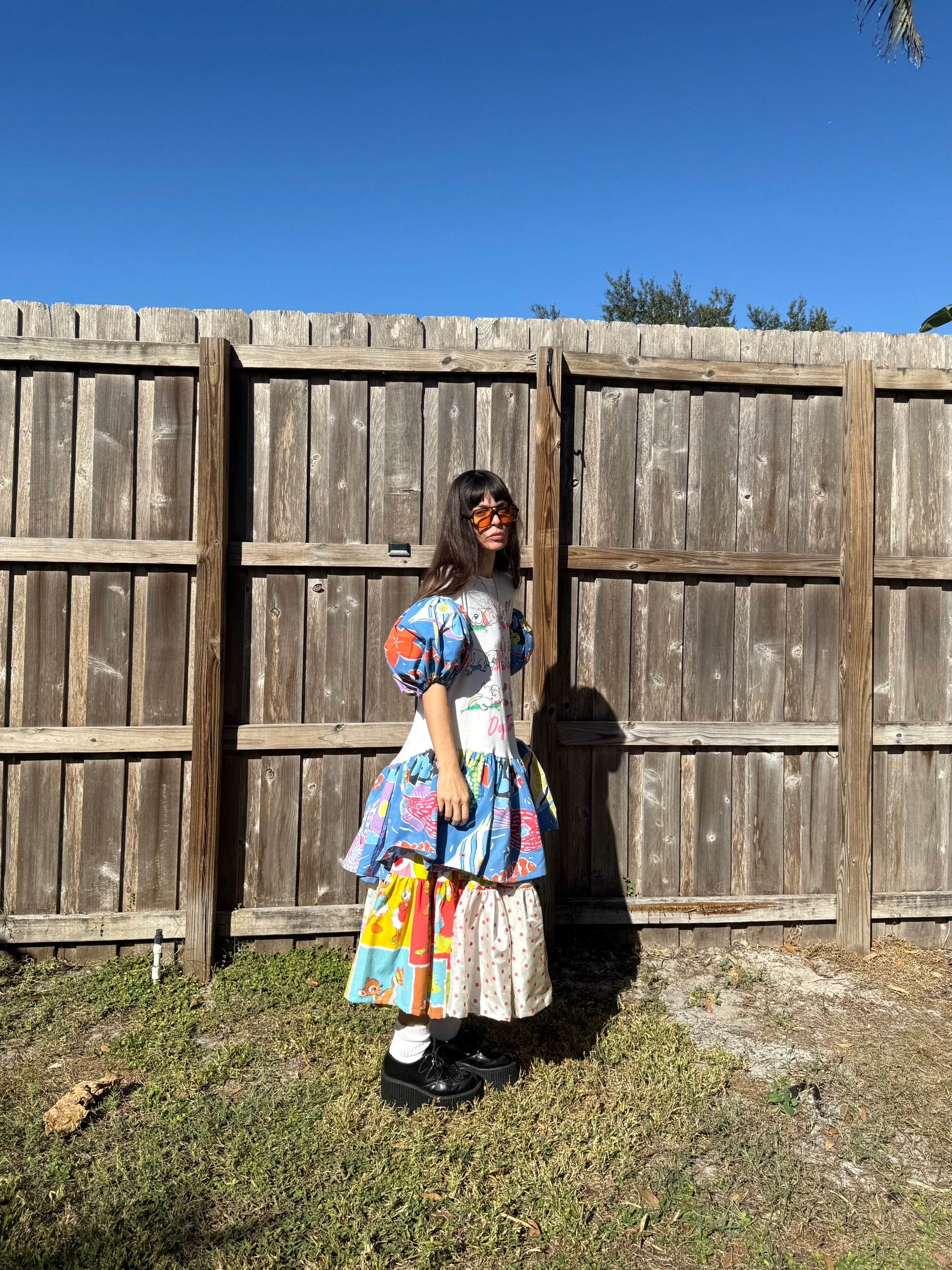Vintage Sleep shirt "one size” with added puff sleeves and ruffle at hem made from vintage under the sea sheets. Sleep shirt slightly taken in at sides and ruffle comes to a V in front and back for a more feminine fit.