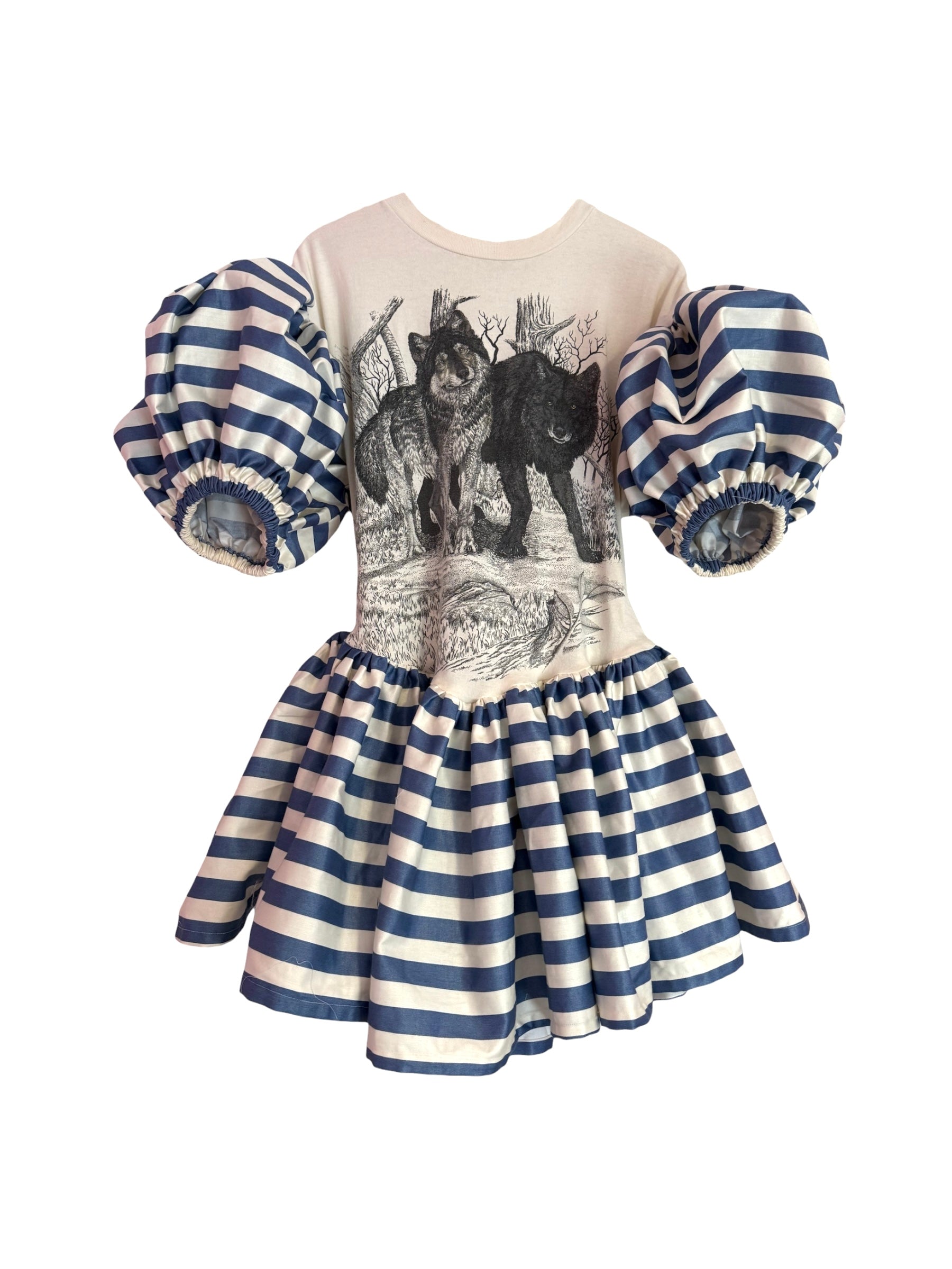 Vintage Sleep t-shirt originally size XL with added puff sleeves and ruffle at hem made from vintage deadstock chintz fabric. Shirt is slightly take in at sides and ruffle comes to a V in front and back for a more feminine fit.