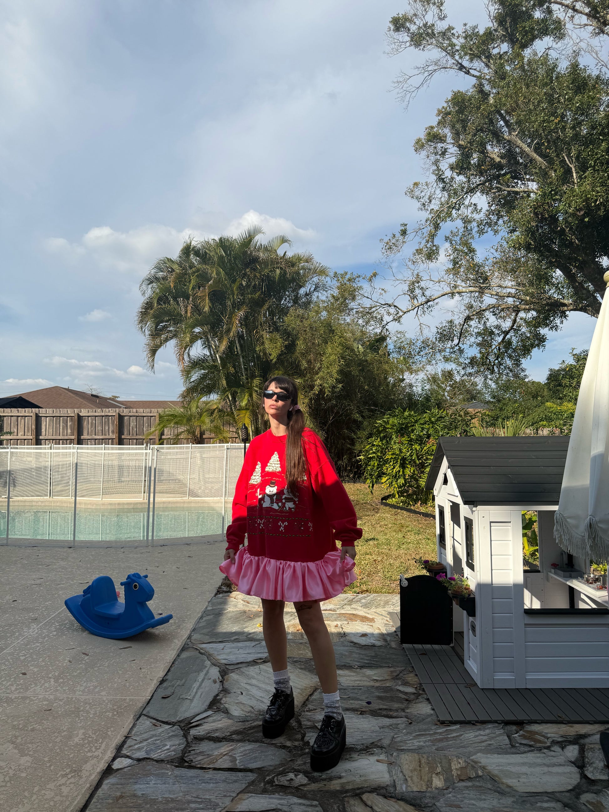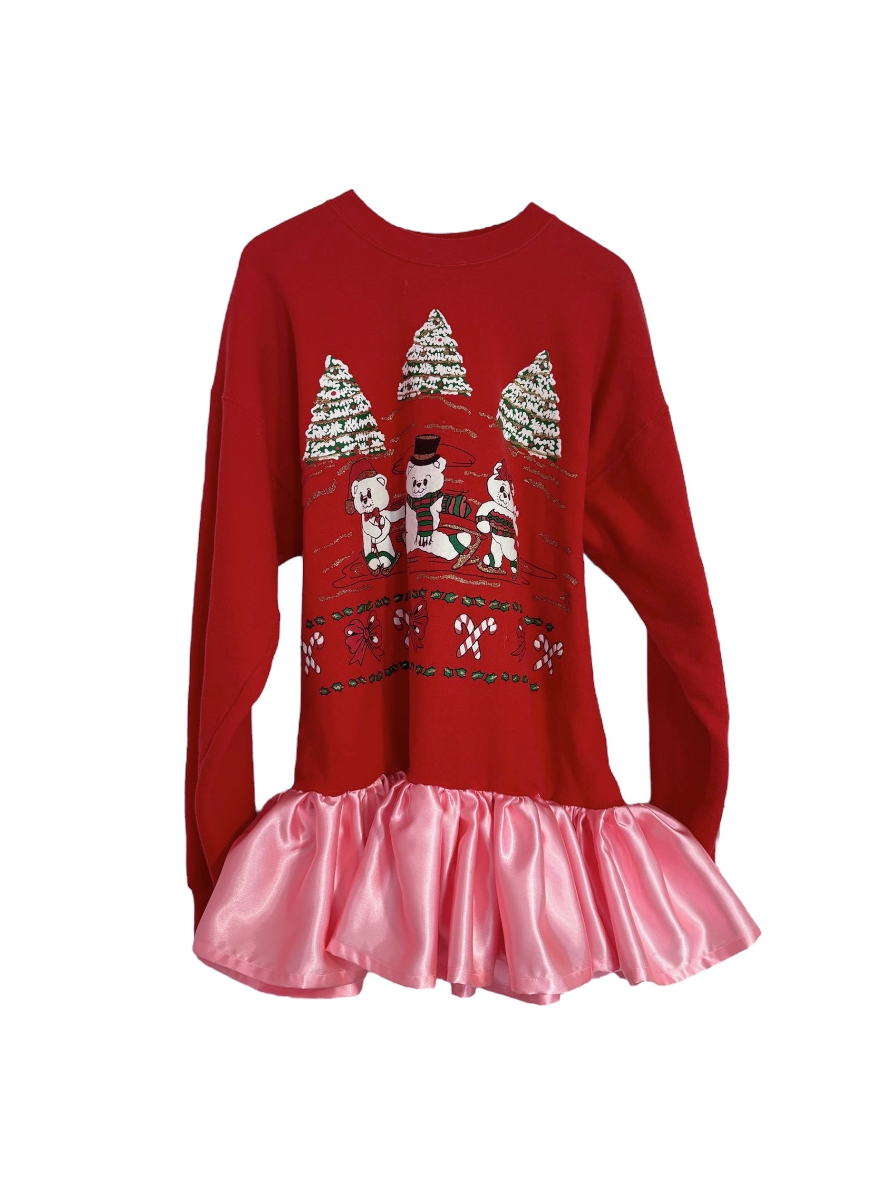 Vintage oversized sweatshirt size XL with added skirt ruffle made from vintage fabric satin.
