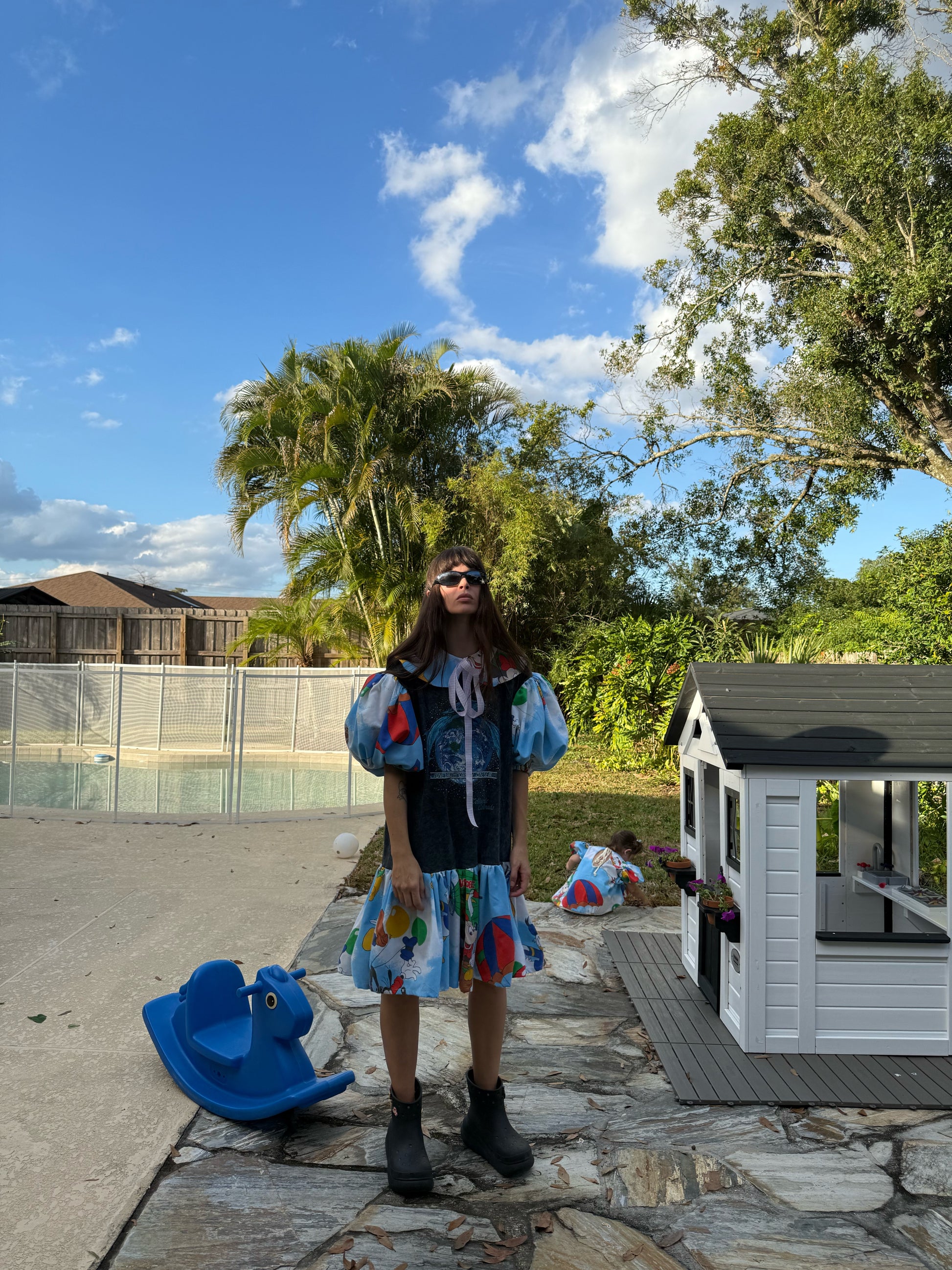 Vintage Sleep shirt one size with added puff sleeves and ruffle at hem made from vintage Disney sheets. Also comes with matching detachable Peter Pan collar.